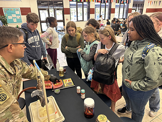 It wasn’t your average lunch break at Gifford Middle School on Tuesday, February 27th. The National Guard Counterdrug Task Force joined 6th, 7th and 8th graders in the cafeteria with a pretty “lung-tastic” display. Invited by the Gifford S.W.A.T. (Students Working Against Tobacco) Club, Staff Sargent Victor Reyes led students on the harmful effects of tobacco.