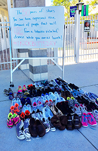 Whether chalking up the sidewalks at Oslo or creating visuals with empty shoes at Storm Grove, these teens keep busy telling their peers the truth about tobacco use.