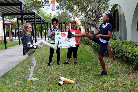 In Indian River County, the SWAT (Students Working Against Tobacco) Club at Sebastian River Middle School will be asking everyone to wear turquois to support them getting out the message about Big Tobacco marketing and Kick Butts Day. They are working hard to end tobacco use in their generation! Several students spoke to officials about why Kick Butts Day is so important. They received a Kick Butts Day Proclamation in a ceremony with Council Members from the City of Sebastian.