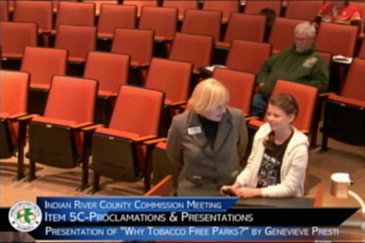 Several months ago, Beth Dingee, a Tobacco Free Partnership member, Kayla Hershberger and Genevieve Presti, students from Indian River County’s SWAT Chapter, met with each of Indian River’s five County Commissioners to advocate for smoke and aerosol free parks and recreation areas. They asked Commissioners to end smoking and vaping at all the County’s parks.