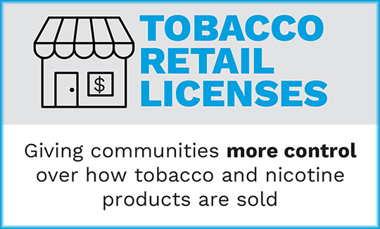 As a community, there are steps we can take to protect our youth from industry tactics and future nicotine addiction. A local tobacco retail license gives communities control over how tobacco is sold within the community. It can be useful in reducing the number, location, density, and types of tobacco retail outlets. It can also limit point-of-sale advertising and product placement; and require retailers to comply with other tobacco control measures (6). A tobacco retail license also gives the community the ability to address emerging products such as electronic cigarettes and restrict flavors of these products.
